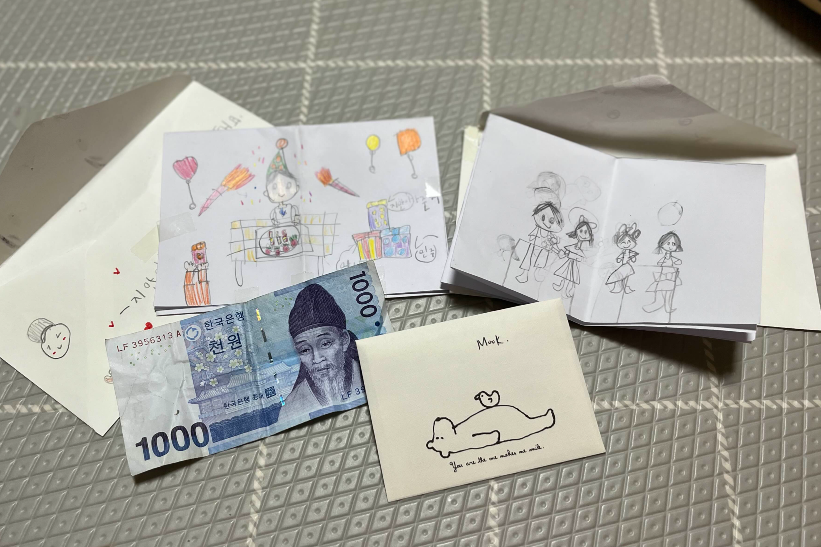 아내와 아이들이 준 생일 축하 편지와 용돈(큰 딸이 줬다, 천 원)은 큰 봉투에 담아 오늘을 표기한 후 나만의 타임캡슐에 보관했다. 많은 시간이 지나고 다시금 이것을 꺼내 볼 때는 지금과는 또 다른 감정에 휩싸일 것이다(천원의 가치도 더 떨어져 있겠지?).
