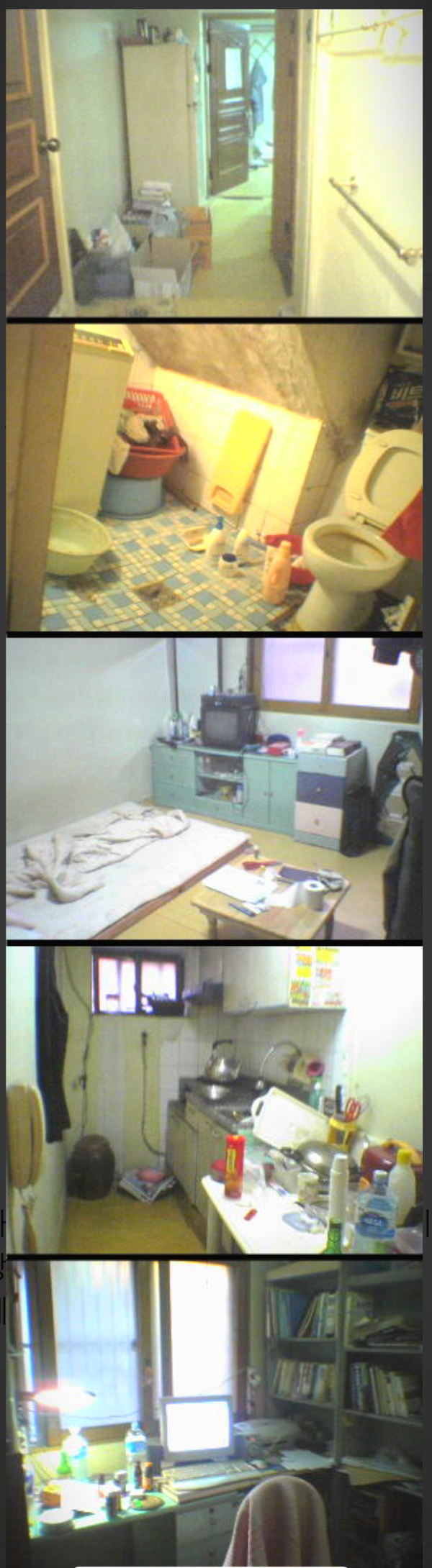 사감 선생님의 간청에도 불구하고 3년 후 복학할 때는 학사로 돌아가지 않고 학교 근처 장위동의 반지하에서 자취를 시작했다. 방 두 개와 통로 같은 주방, 그리고 영화 기생충에 나올 법한 화장실이 있는 공간이었다.