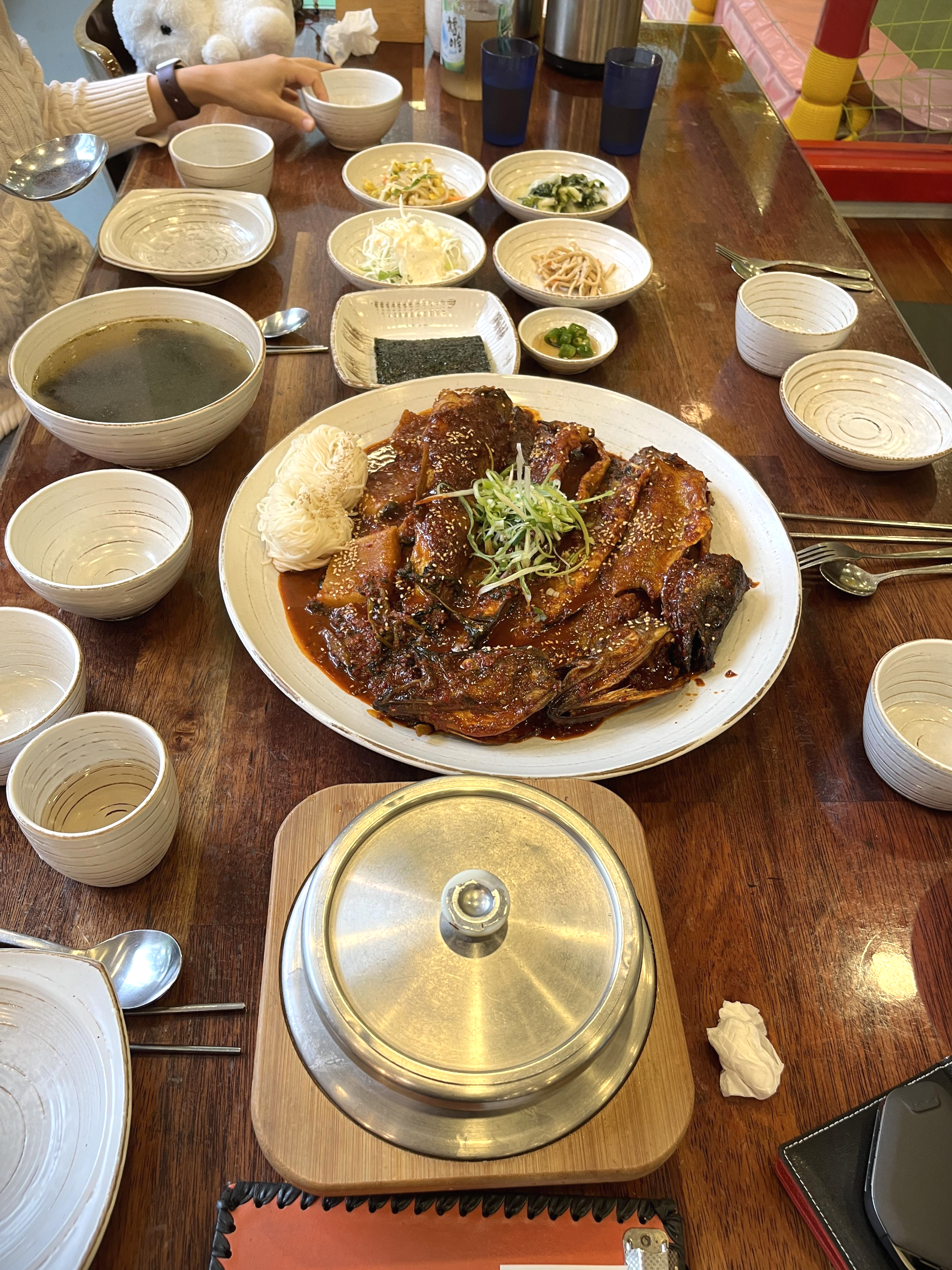 오랜만에 네 식구가 기분 좋은 외식을 했다. 음식을 먹으며 행복을 느끼는 순간이 많지 않은데 이 집의 시래기명태조림은 음식으로 행복을 주는 몇 안 되는 식당 중 하나다. 체인점이긴 해도 손님이 온다면 모시고 가서 캐주얼하게 즐길 수 있는, 그런 식당이다.
