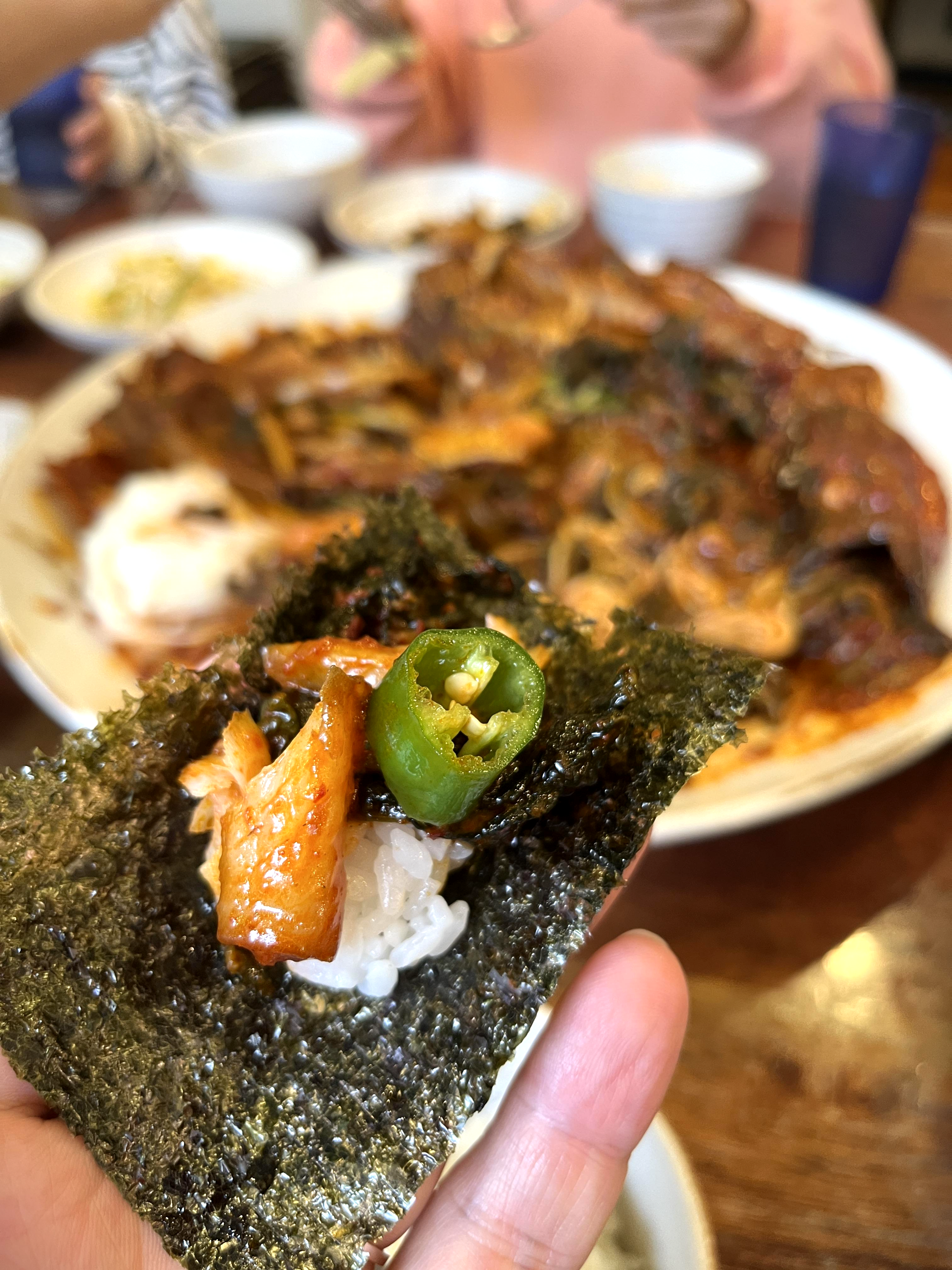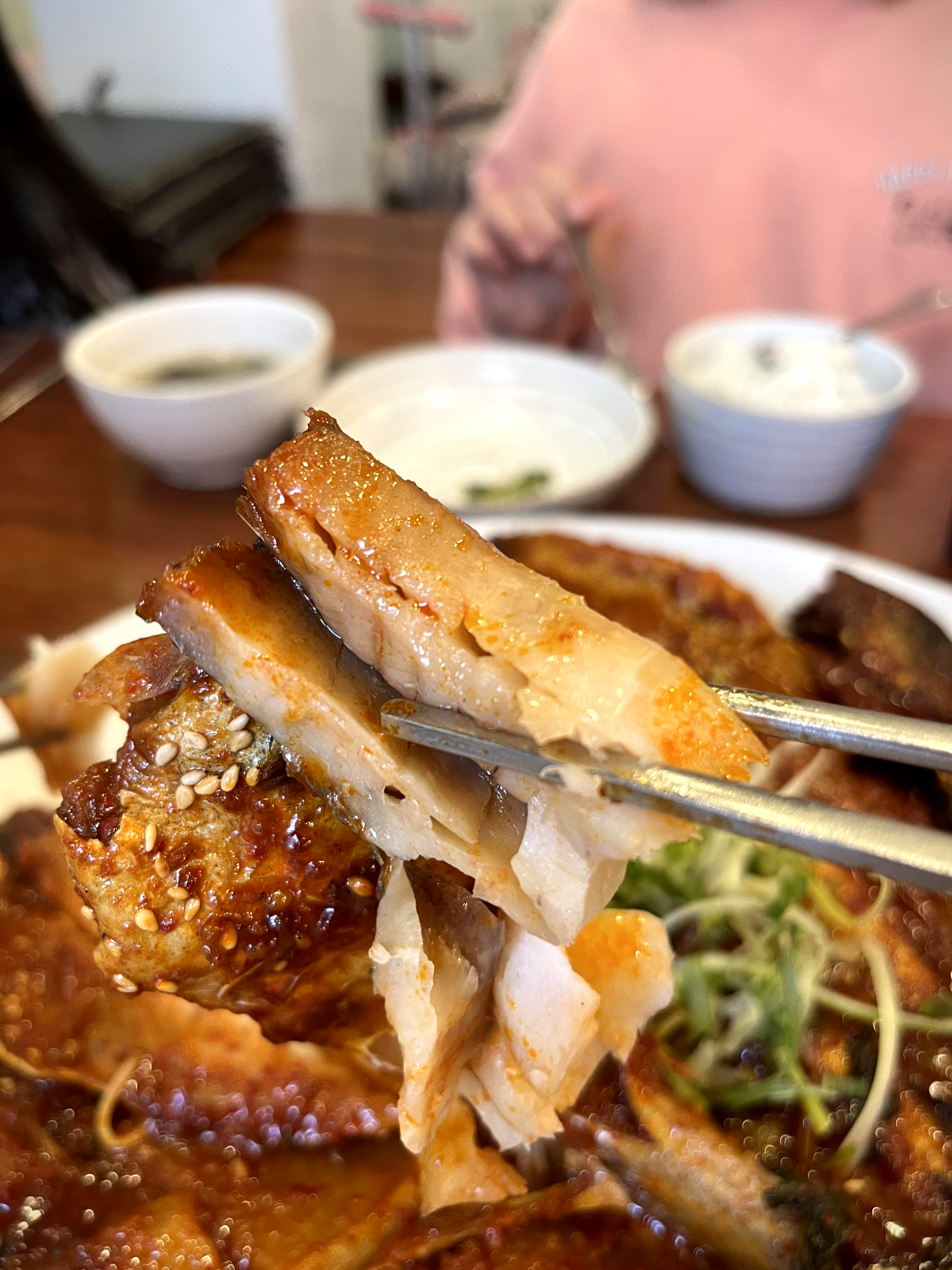 둘째는 아직 매운 음식에 익숙지 않아 양념이 적은 속살 위주로 발라 줘야 했지만 매운맛의 매력을 알아챈 큰 딸은 접시에 놓아주는 족족 입에 넣기 바빴다.