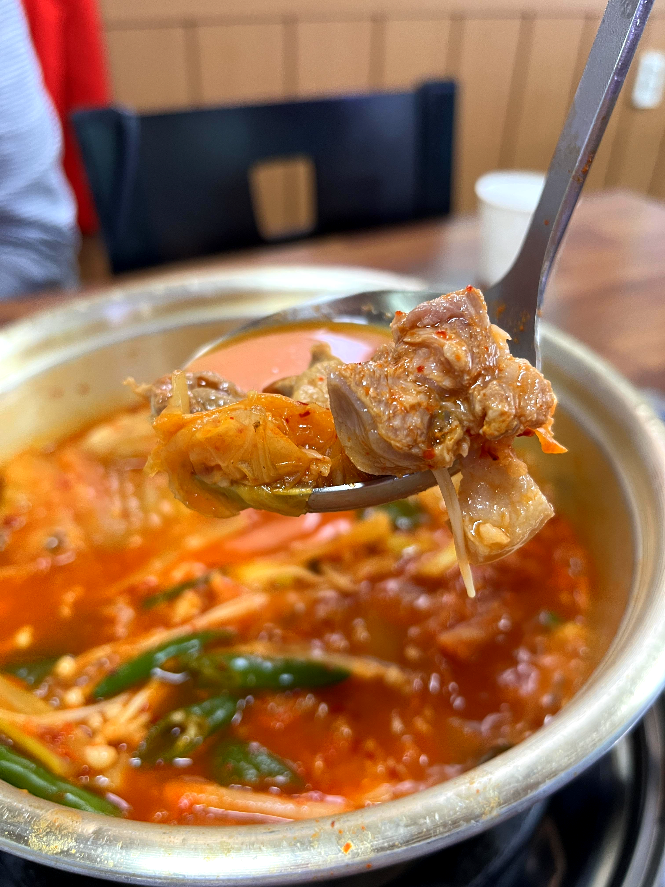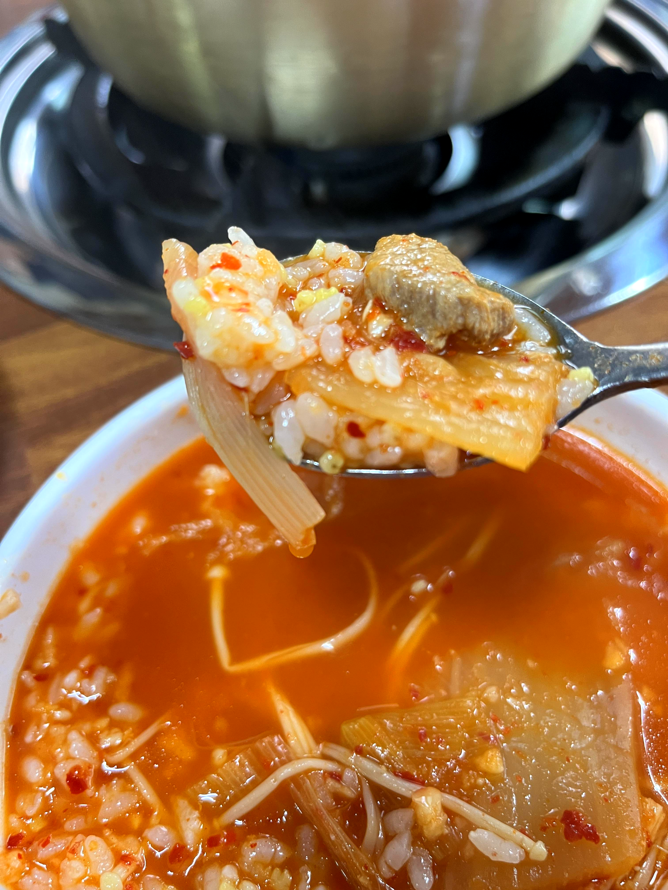큼지막하게 썬 돼지고기도 푸짐하게 들어 있다. 열심히 먹는다고 하는데도 숟가락을 놓을 때면 고기 몇 점을 남기기 일쑤다.