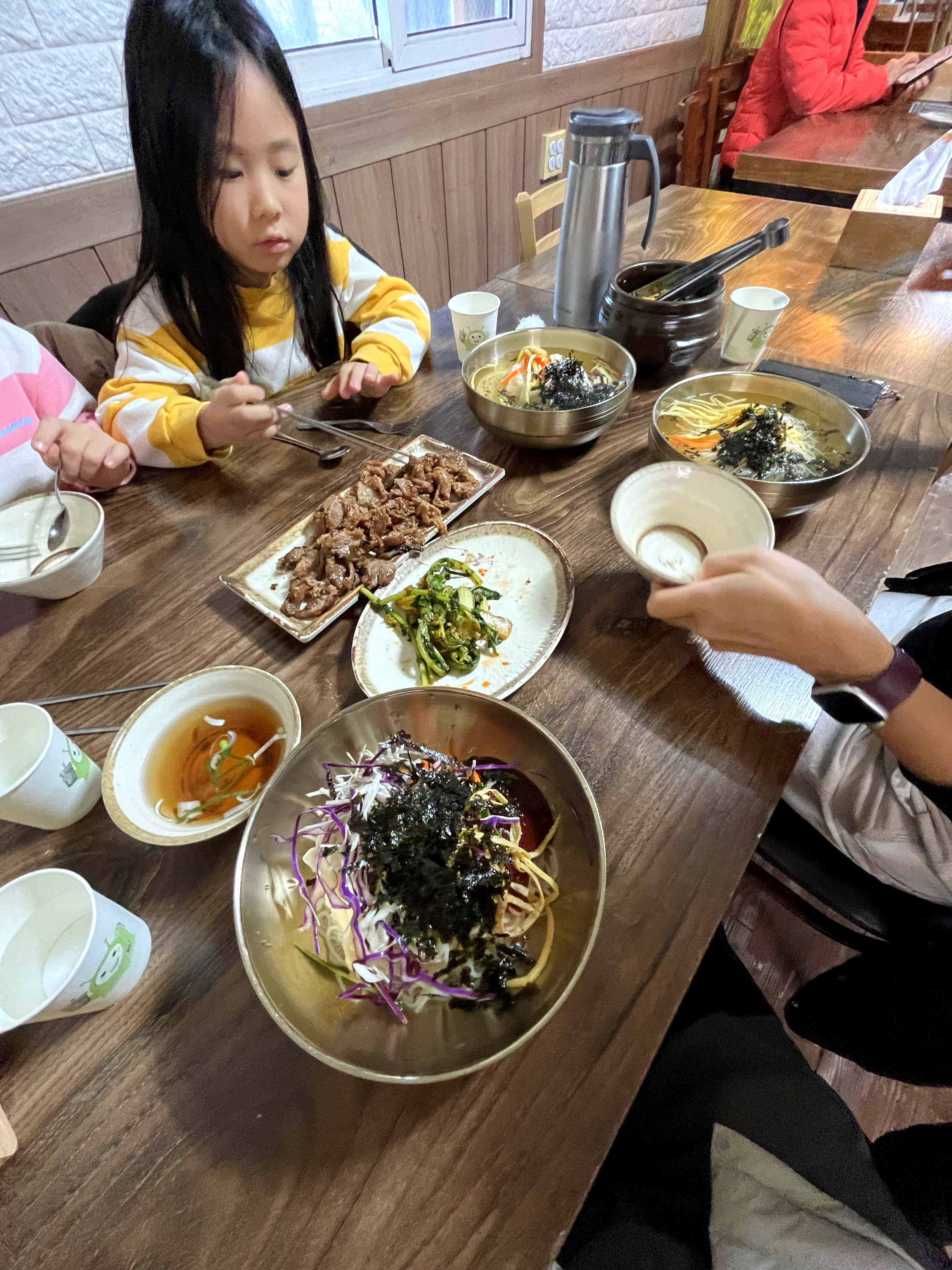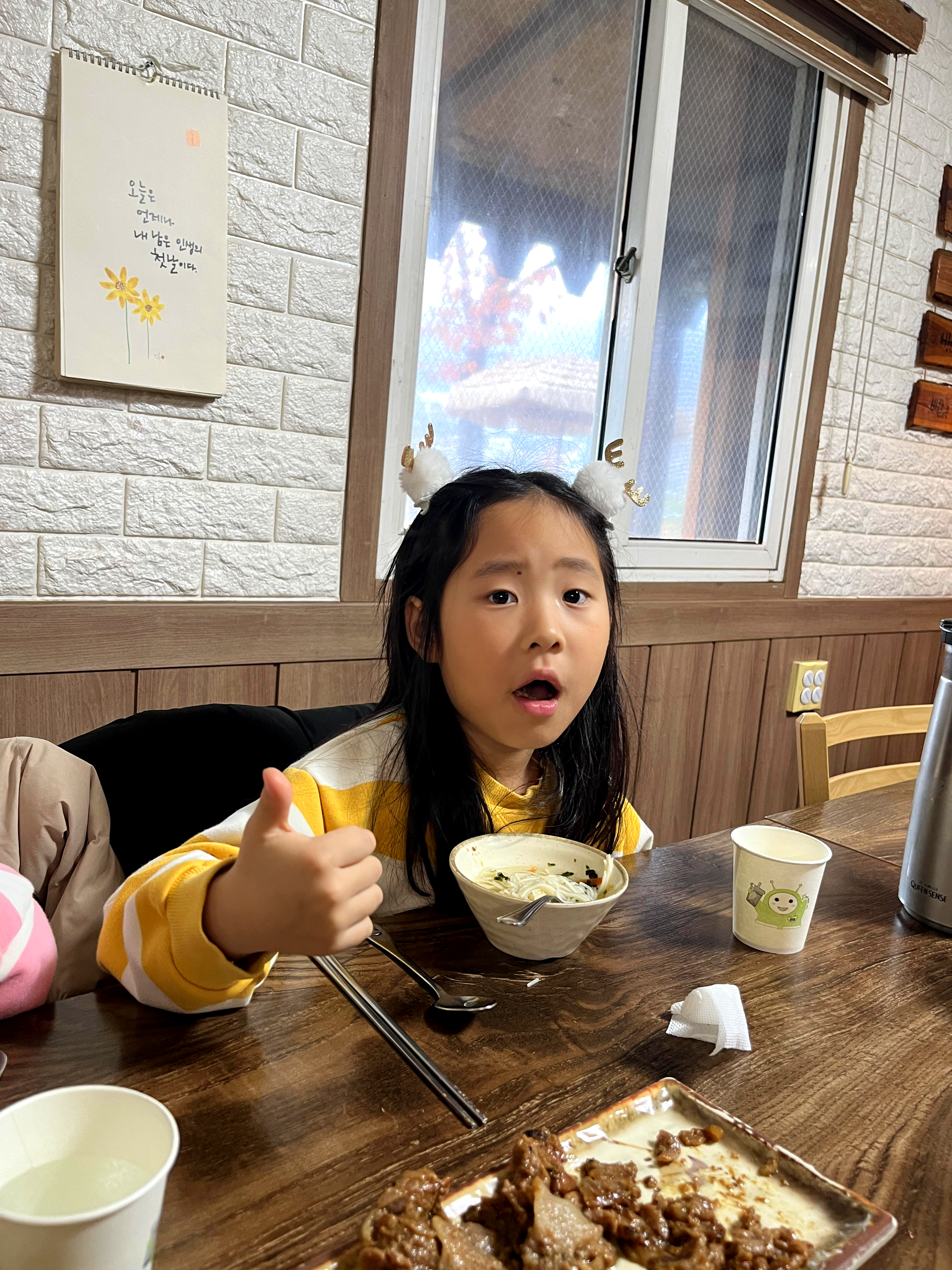 특히 집을 나설 때 국수는 먹기 싫다며 고기만 먹겠노라 으름장을 놓았던 둘째는 약속이 무색할 만큼 엄지를 치켜올리며 잔치국수를 먹어댔다.