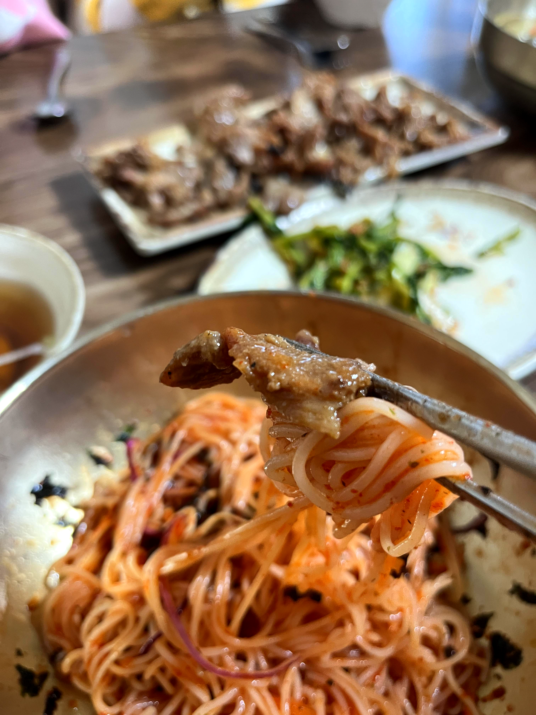 붉은 양념장이 매혹적인 비빔국수.